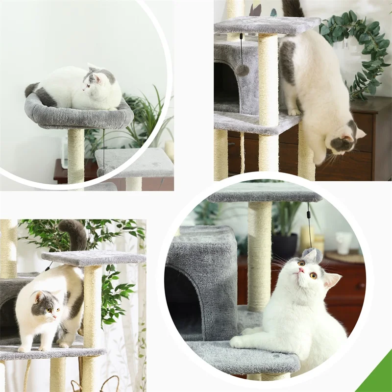 Large Sturdy Cat Tree with Multi-Level Cat Condos with Sisal Poles Hammock Cat Toys Climbing Tree House Furniture for Cats
